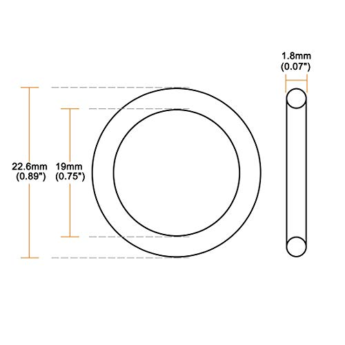 Guarnizione in gomma nitrilica, diametro interno 19 mm, diametro esterno 22,6 mm, larghezza 1,8 mm, guarnizione rotonda, confezione da 20