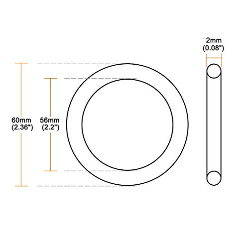 Guarnizione in gomma nitrilica, diametro interno 56 mm, diametro esterno 60 mm, larghezza 2 mm, guarnizione rotonda, confezione da 10