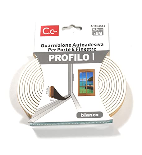 GUARNIZIONE PORTE E FINESTRE IN GOMMA SCHIUMA 6 MT PARASPIFFERI PARAFREDDO PER ISOLAMENTO AUTOADESIVA RISPARMIO ENERGIA E BOLLETTE (PROFILO I, BIANCO)