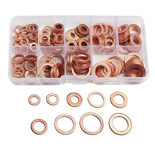 Set di guarnizioni in rame per guarnizioni e anelli di tenuta, 200 pezzi, per accessori hardware (9 misure, M5-M14).