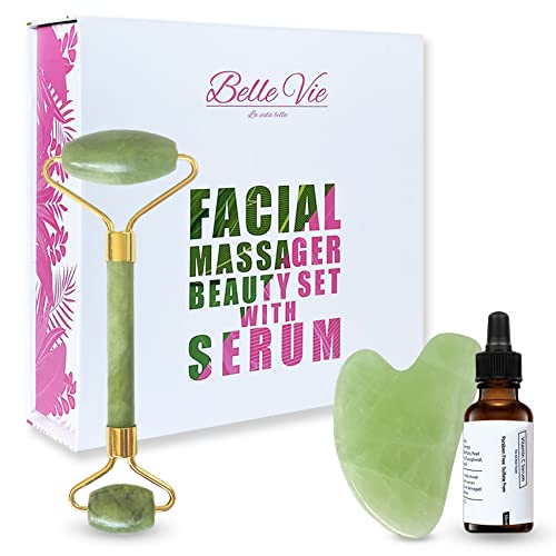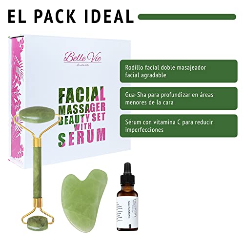 Guasha per il massaggio facciale, rullo di giada e gua sha con siero di acido ialuronico, vitamina C e collagene. Siero viso da 30 ml naturale, idratante e riparatore. Massaggiatori facciali.