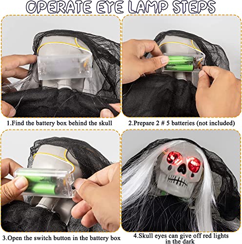Led Light Up Red Eyes: queste decorazioni per esterni di Halloween scheletro sono progettate con occhi lampeggianti a LED, una volta acceso, emetteranno luce rossa, aggiungendo un tocco spaventoso alla tua notte di Halloween (2* batterie AA richieste, batterie non incluse)
