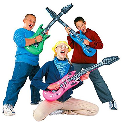 GRANDE DIMENSIONE: Sono vicini alla dimensione reale e più grandi della maggior parte degli altri giocattoli simili, le chitarre gonfiabili sono 38 pollici, i microfoni gonfiabili sono 9,5 pollici, gli occhiali sono 6 pollici, il sassofono è di 28 pollici, la tastiera gonfiabile è di 24 pollici
