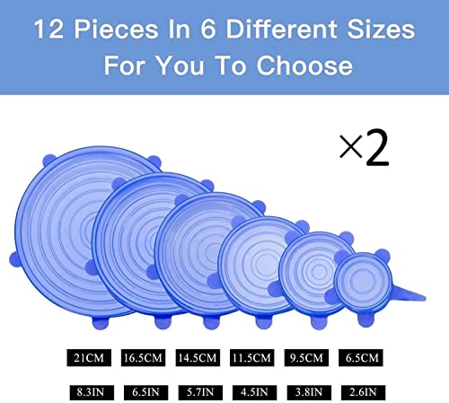 GUBOOM Coperchi in Silicone Estensibili, Coperchi elastici in silicone, tappi in silicone per contenitori, Coperchi in Silicone Stretch, Riutilizzabile ed Espandibile Coperchio- BPA Free (12-blu)