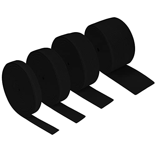 GUBOOM 4 Pezzi Elastica Banda per Cucito, 5 Metri Nastro Elastico Piatto, Non Facilmente deformabile Largo10mm 20mm 30mm 40mm Elastiche Bobine Accessori Fai da Te per Cucito (Nero)