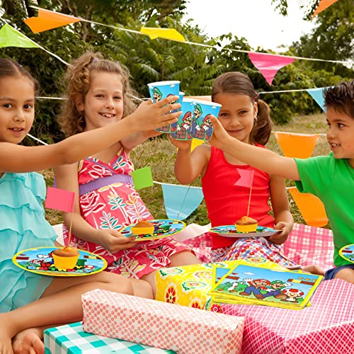 GUBOOM Stoviglie Festa Super Mario, 41Pcs Stoviglie per la Festa di Compleanno di Super Mario, Mario Stoviglie Include Tovaglie, Piatti, Bicchieri, Tovaglioli, Striscioni - 10 Porzioni