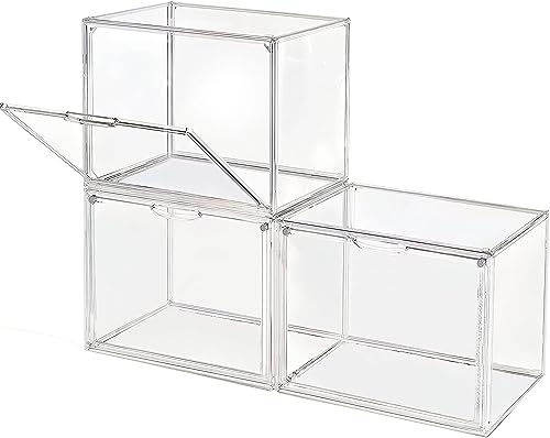 GUDEMAY Scatole di Plastica Impilabili Trasparenti con Chiusura Magnetica, Vetrina Espositiva, Teca Plexiglass per Conservazione, Figurine, Libri, Collezionismo, Scarpe, Borse e Altro (Set da 3)