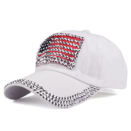 Gudessly Bling - Berretto da baseball da donna, con strass, regolabile, in denim, Bandiera bianca.,