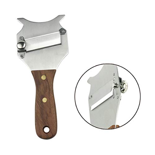 GuDoQi Tagliatartufi, 2 Pezzi, Lama Ondulata E Lama Diritta, Lama Regolabile, Manico in Legno, Acciaio Inossidabile, Affetta per Tartufi, Formaggio, Aglio, Funghi