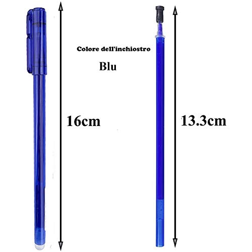 【Pacchetto incluso】: 12 penne cancellabili blu con gomma cancella+ 30 ricariche penne cancellabili. Un'estremità della penna viene utilizzata per scrivere e l'altra estremità ha una gomma che può essere utilizzata per cancellare ciò che deve essere modificato.