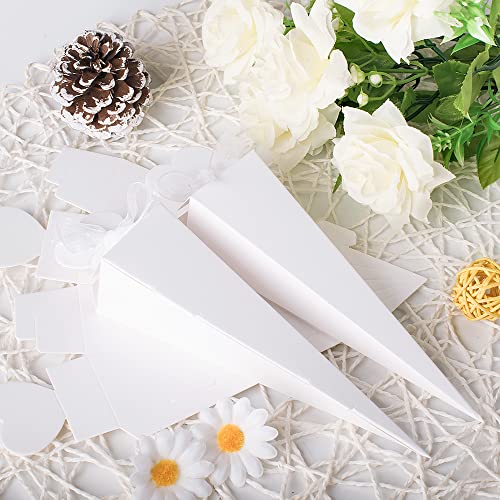 Gudotra 100 Pezzi Coni Portariso Matrimonio Bianchi Coni Portaconfetti con Nastri Bianchi Bomboniere Matrimonio Comunione Battesimo