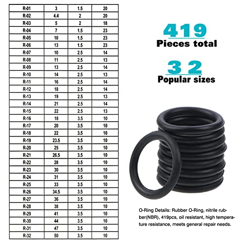 【Risparmia Semplicemente】O ring Nitrile Nero da 419 pezzi sono ordinate e posizionate in diverse griglie nella scatola di immagazzinaggio. che puoi facilmente portare con te e riporre via e che non si confondono facilmente.