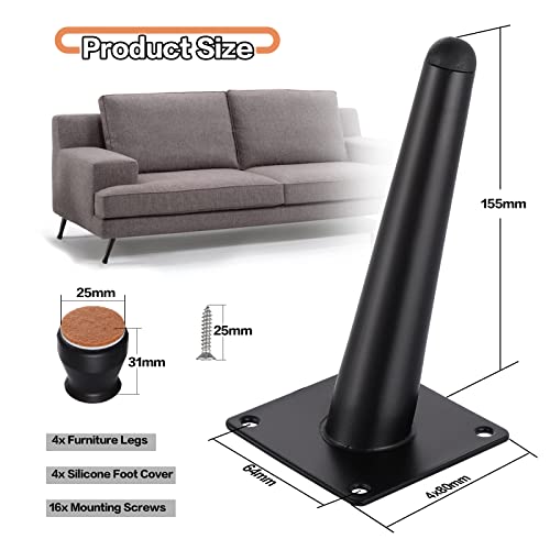 Gueenky 4 Pezzi Piedini per Mobili Neri 15 cm, Gambe di Mobili Coniche Piedi per Divano in Metallo Piedi in Ferro per Tavolino Gambe per Divano Tavolino Armadi, Capacità di Carico 300 kg