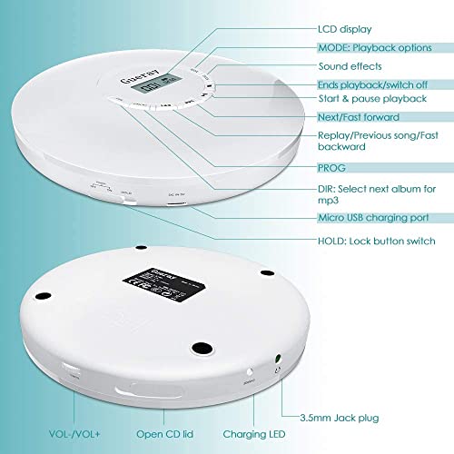 Gueray Lettore CD Portatile Built-in 1400MH Batteria Compact Disc Player con Cuffie Aggiornamento Personal CD Music Disc Walkman Player