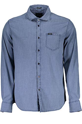 Guess Camicia Manica Lunga Uomo Micro quadretto Blu