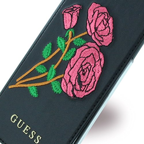 Guess Guflbkpxerobk Flower Desire Custodia In Finta Pelle Con Rose Ricamate Per Iphone X, Colore: Nero
