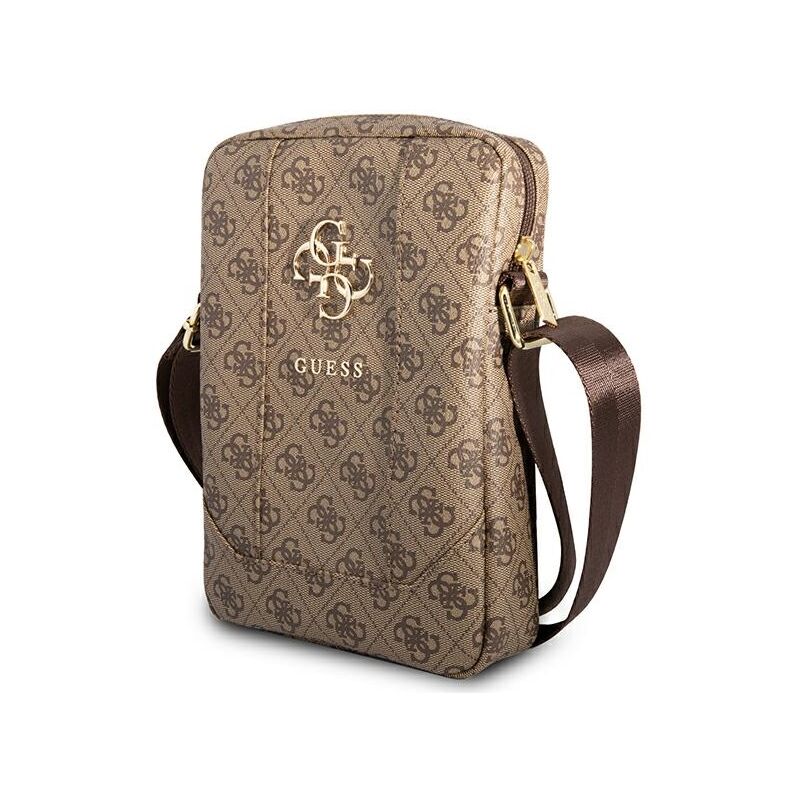 Guess 4G Big Metal Logo Tasche für Notebooks und Tablets bis 10 Zoll. Das Produkt zeichnet sich durch eines der bekannteren Motive von Guess aus, die 4G-Embleme, die auf einer angenehm anzufassenden Saffiano-Textur platziert sind. Ein großes, goldenes Guess 4G-Logo und weitere kleinere darunter. Die Kombination dieser Elemente verleiht dem Ganzen ein sehr elegantes Aussehen. Doppelseitige Reißverschlüsse und ein abnehmbarer, verstellbarer Schultergurt sorgen für Tragekomfort: · Tasche für Tablets und Notebooks mit einer Diagonale von 10 Zoll · Angenehme Saffiano-Textur verziert mit 4G-Logo · Großes, goldenes Logo und kleineres Guess · Schutz des gesamten Geräts · Abnehmbarer, verstellbarer Schultergurt und Zwei-Wege-Reißverschlüsse