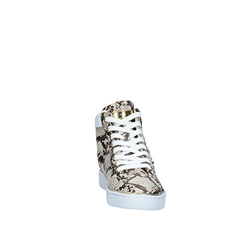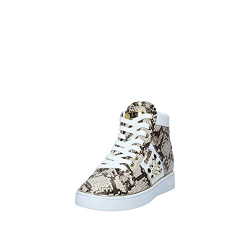 Guess Sneakers Alte Donna Pelle Beige Effetto Pitonato con Borchie in Acciaio Dorato. Fondo in Gomma Bianca Antiscivolo. N.40