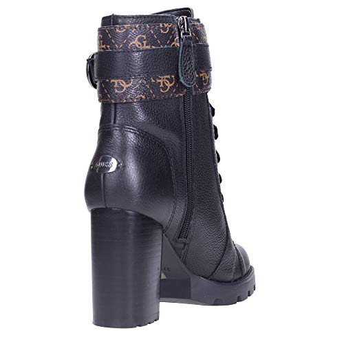 Guess Stivaletti Anfibi, Donna, Pelle Nera con Cinturino logato Marrone. Chiusura con Stringhe e Zip Laterale. N.35