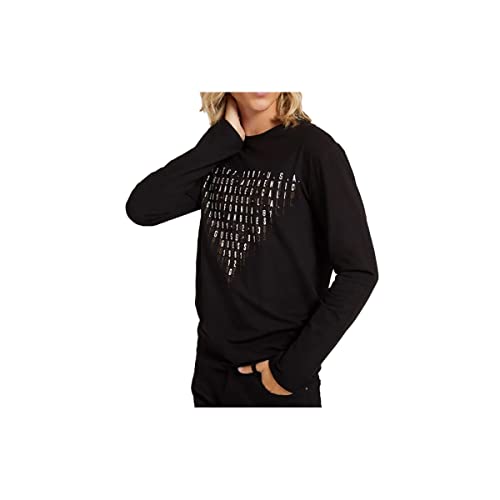 GUESS t-shirt manica lunga uomo maglia con stampa frontale in cotone nera XL