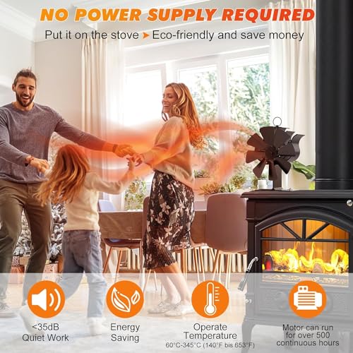 【Potenza termica】 Ventola stufa è alimentata dal calore del camino o della stufa a legna e non richiede elettricità, il che può ridurre il consumo di legna da ardere, risparmiare carburante ed essere rispettoso dell'ambiente.