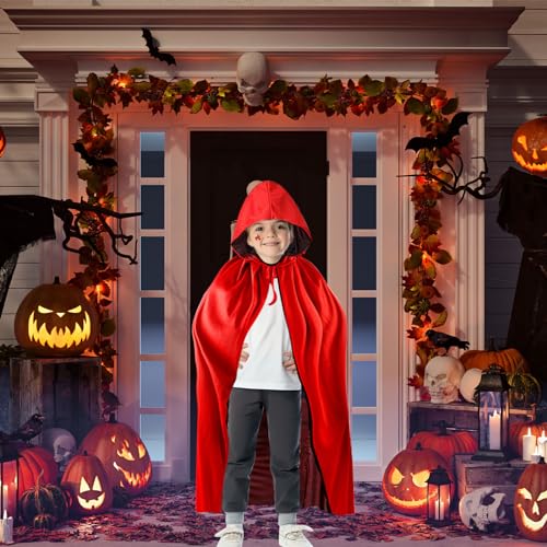 【Mantello a doppia faccia】 Mantello con cappuccio di Halloween, è nero, lo strato interno è rosso, puoi indossare il mantello al contrario, ti porterà un'esperienza diversa.Mantello vampiro nero rosso Lunghezza: 90cm lungo,vestito per bambini la cui altezza è compresa tra 110-140cm.