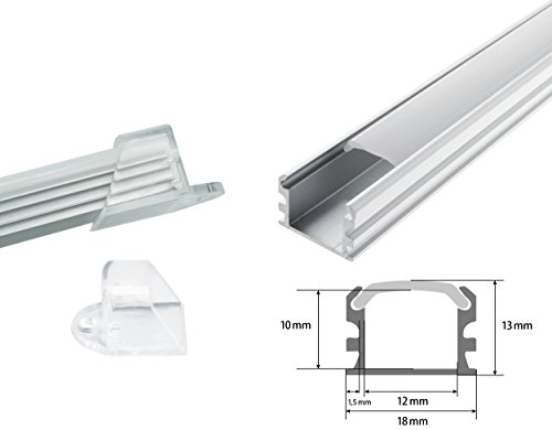 Guida in alluminio per il montaggio di strisce LED, profili vari, latteo, Profil C