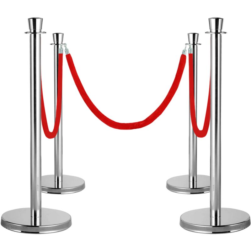 Set di 4 pali di delimitazione e 3 corde di guida in velluto rosso. Arreda il tuo negozio o il tuo evento con questi paletti guida. Crea code che si adattino perfettamente alle tue esigenze e consentano il controllo della folla. Ogni palo può ospitare più corde di separazione per creare le code adatte. Semplici e veloci da installare, bastano meno di 5 minuti per creare e delimitare il tuo percorso o la tua coda. Appositamente progettati per la guida delle folle, i paletti guida sono dotati di una base di cemento da 6 kg e di 4 incavi per le corde. I paletti guida in acciaio inossidabile possono essere utilizzati sia all'esterno che all'interno. La qualità professionale dei paletti ti permetterà di proteggere la tua area di attesa e evitare qualsiasi rischio di sovraffollamento. Saranno indispensabili per l'organizzazione dei tuoi eventi. Dimensioni Altezza del palo 100 cm - Diametro della base 32 cm - Cordone: Lunghezza 150 cm x Diametro 28 mm Materiale Struttura in acciaio cromato