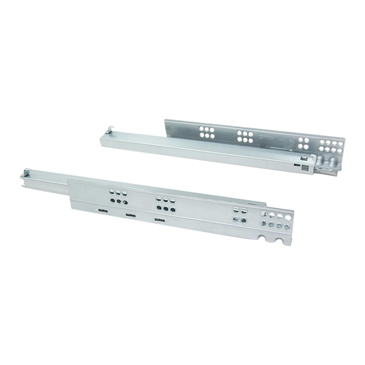 Guide a scomparsa ad estrazione totale con push per cassetti con profondità di 340 mm. Sistema di espulsione premendo il cassetto. Progettati per i mobili di tutta la casa: per cassetti di cucina, bagno, camera, lavanderia, ufficio. Si forniscono in set completi con lato destro e sinistro. Carico massimo di 25 kg.. Ideale per carico massimo 25 kg. Adatto per cassetti con profondità 340 mm. Grazie al sistema push-to-open sono perfette per cassetti senza maniglie o senza pomoli. Finitura perfetta tramite regolazione verticale +4,5 mm mediante perno. La rotazione avviene su rulli che permetto lo scivolamento guidato in senso orizzontale e verticale.. Finitura perfetta tramite regolazione verticale +4,5 mm mediante perno. La rotazione avviene su rulli che permettono lo scivolamento guidato in senso orizzontale e verticale.