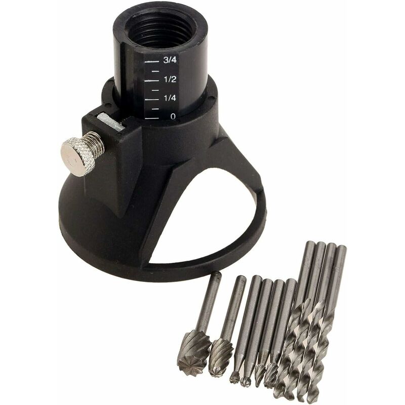 Diametro testa abrasiva: 3.175 mm. Dimensioni coperchio di posizionamento: 60 x 42 mm Facile montaggio a vite sull'utensile rotante. È sicuro quando si utilizza Dremel con esso. Utilizzato per il fissaggio di punte da trapano, fresatrici e altri. Molto facile da usare e da mantenere L'ampia finestra offre un'eccellente visibilità per un migliore controllo. Consente il taglio preciso di legno, metallo, PVC, ecc. Adatto per legno, plastica e altri materiali morbidi, intaglio, incisione, svuotamento, smussatura, asolatura, alesatura, ecc.