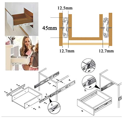 XYNH Guide Scorrevoli 500mm - Guida per Cassetti Cucina Estensione Totale, con Chiusura Automatica, Soft Closing, Portata Fino A 75kg Acciaio Guide Cuscinetti