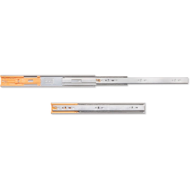 Guide con estrazione totale per cassetti con chiusura soft che fornisce una chiusura ammortizzata del cassetto, e uno scivolamento morbido e silenzioso grazie ai suoi cuscinetti a sfera di alta qualità. Sono noti, inoltre, per la grande capacità di carico che può arrivare a sopportare fino a 35 kg per cassetto. Il montaggio al cassetto si realizza mediante viti e lo smontaggio con grilletto. Guide con cuscientti a sfera ed estrazione totale del cassetto. In acciaio zincato. Altezza 45 mm. Lunghezza 350 mm. Carico massimo per set di 35 kg. Si forniscono in set completi. Dispongono di un pistone ammortizzante in entrambe le guide, che fornisce una chiusura soft del cassetto. Possiede un grilletto per lo smontaggio della guida. 1 set di guide a sfere