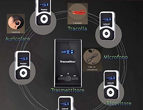 1 Trasmettitore con microfono e 6 ricevitori con auricolare
