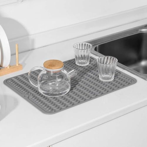 Guidre 2 Tappetino Scolapiatti,Grande Tappetino Scolapiatti in Silicone,Sgocciolatoio per Lavello,Resistente al Calore,Tappetino Lavello Cucina, Sottopentola in Silicone (40×30,Nero/Grigio)