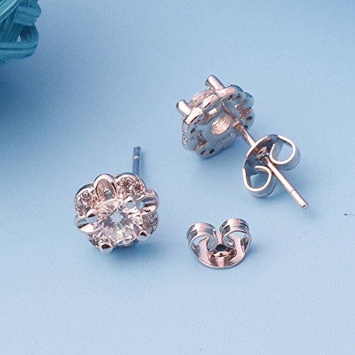 GUIJI Orecchini a Bottone da Donna a forma di Fiore (non pieno) Placcati d'Argento