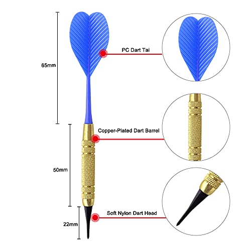 Guijiyi Freccette Punta Plastica, Set di 12 Freccette Morbide, Soft Darts Set di Freccette per Bersaglio Elettronico, 80 Punte Morbide di Freccette