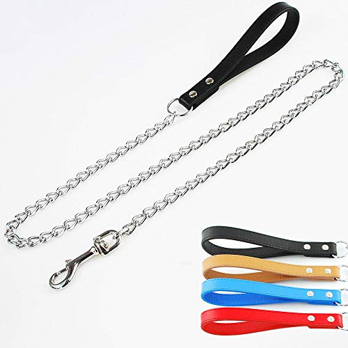 Guinzagli Base per Cani Durevole Cavo in Metallo Anti Morso Catena per Cane per Piccola Media Grande Catena per Cani Guinzaglio Manico in Pelle Pu Catena in Ferro Accessori per Animali Domestici NER