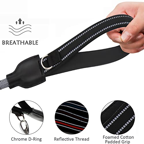 Guinzaglio antiscivolo per cane, 1,8 m, anti-soffocamento con 2 comode maniglie imbottite, in nylon resistente riflettente per cani di taglia media e grande (grigio, 1,8 m), 13 mm
