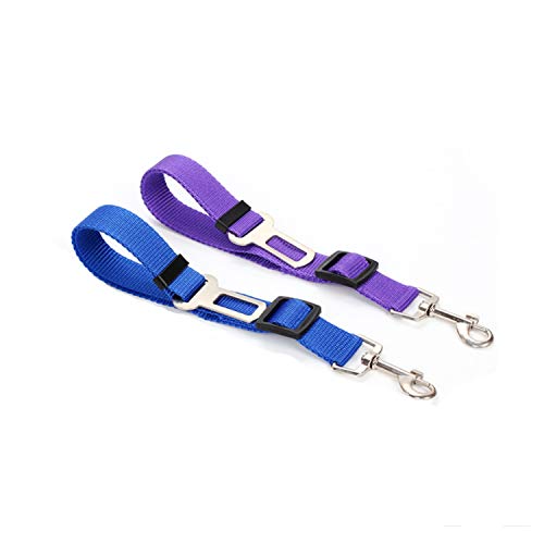 JZK 2 x Guinzaglio Cablaggio Cintura di Sicurezza per Cane per Auto, Regolabile 42~70cm, Accessorie da Viaggio per Cane (Viola + Blue)