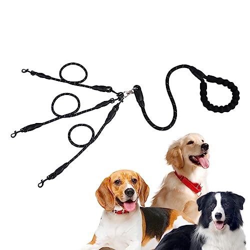 Guinzaglio per cani a tre vie - Corda di trazione per cani da compagnia,Corda di trazione per tre animali domestici senza grovigli con impugnatura imbottita, dispositivo girevole a 360° per Pw tools