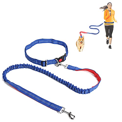 Guinzaglio da corsa per cani senza mani, cintura per cani da jogging, regolabile, elastico e corda a strisce riflettente, in nylon elasticizzato antideflagrante per cani e trekking.