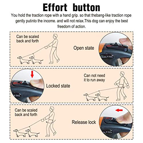 Doppio retrattile: questo guinzaglio retrattile a doppia testa permette di controllare due cani contemporaneamente. Ogni guinzaglio può sopportare 24,9 kg, adatto per cani di piccola taglia.