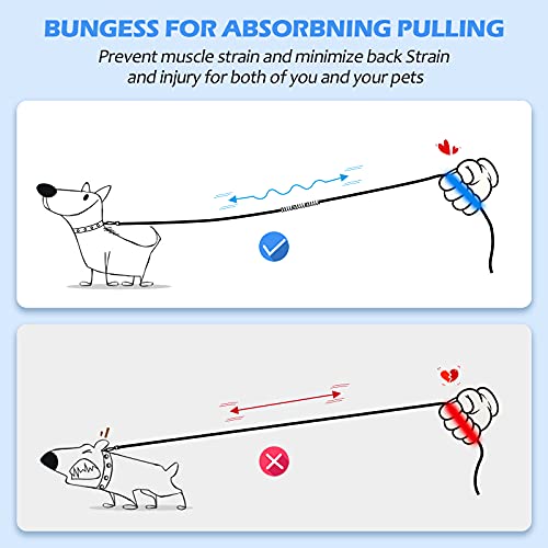 【DUAL BUNGEE GUINZAGLIO ASSORBENTE DEGLI URTI】 Questo guinzaglio è dotato di doppi elastici ammortizzanti durevoli, non facile da rompere e più durevole,minimo il rischio di lesioni sia per te che per il tuo cane. Fornisce un migliore controllo e assorbimento degli urti. Il guinzaglio può essere allungato da 190cm / 74,8in a 243cm / 95,7in.