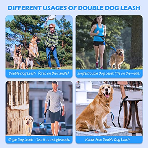 Guinzaglio Doppio per Cani, YOUTHINK Guinzaglio Mani Libere Regolabile Fibbia per Cintura di Sicurezza, 360 ° Senza Grovigli, Sdoppiatore Corda Elastico Riflettente Antiurto,Media Grande Cani 180 KG
