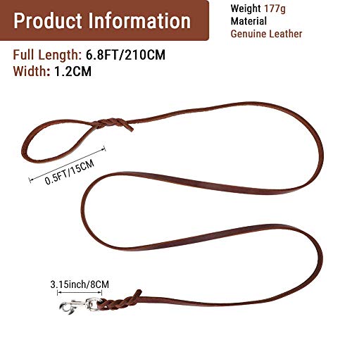 CORDE ALLA MODA PER L'ADDESTRAMENTO DEL CANE: Il guinzaglio in pelle per l'addestramento del cane è tagliato in pelle piena, levigato a mano, un cambiamento rispetto ai metodi tradizionali, fissato con rivetti, può essere facilmente tagliato, sbloccato su collari o imbracature per cani. Adatto a tutti i tipi di cani, come Pomerania, Carlino, Golden Retriever, Labrador, Pastore Tedesco, Bassotto e altri cani di taglia media.