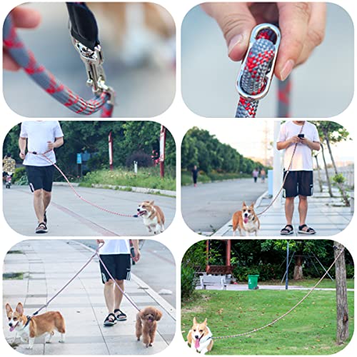 Guinzaglio per Cani Regolabile Libera, 2,60m Riflettente Multifunzione Nylon Doppio Guinzaglio, Ottimo per Camminare, Correre e Allenarsi a Mani Libere (L - 1,2 x 260 cm, Blu & Grigio)