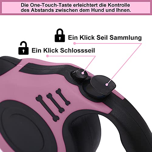 Guinzaglio per Cani, 3 m Guinzaglio Retrattile, per Cani di Piccola, Media e Grande Taglia, Rosa