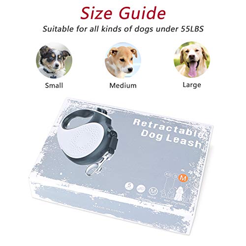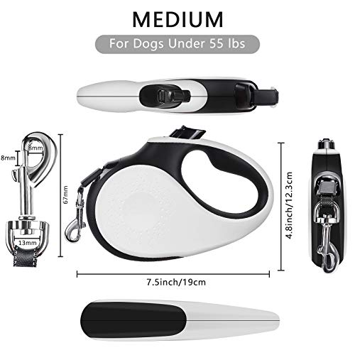 Durevole per cani di taglia media, adatto per cani fino a 24,9 kg. Guinzaglio estensibile per cani, 360° senza grovigli, nastro in nylon ad alta resistenza da 4,9 m con gancio girevole resistente alla ruggine e materiale ABS stabile resistente agli urti, molla elicoidale interna per una ritrazione costante per diversi anni.