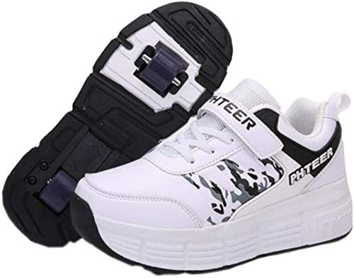 GUIOB Pattini A Rotelle Scarpe con Ruote Scarpe Sportive Skateboard Ginnastica All'aperto Sneakers Ragazzi Ragazze Scarpe Casual Scarpe da Skateboard per Bambini Ragazze Ragazzo,White-39