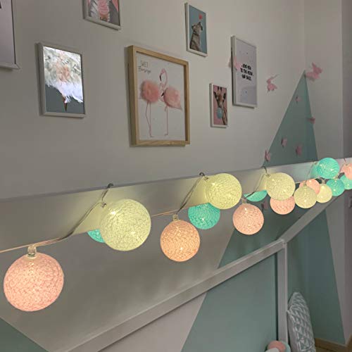 ➤ 【 24 SFERE ULTRA RESISTENTI】 - Cotone intrecciato fine - Plastica trasparente resistente - Uso interno IP44 - ∅6cm - 4 colores (rosa polvere, blu menta, beige, bianco) - Decorazione per la camera del bambino, bambino, in soggiorno, ingresso, in patio - Porta un'atmosfera davvero accogliente e calda per una decorazione di successo